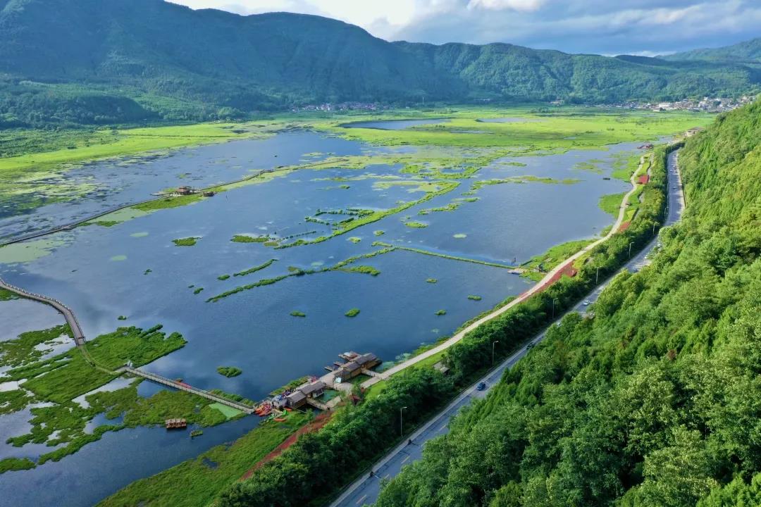 騰沖北海濕地保護區(qū)四面環(huán)山,地理位置特殊,屬高原火山堰塞湖生態(tài)系統(tǒng),大片漂浮于水面的陸地;猶如在五彩繽紛的巨型花毯,具有生物多樣性復雜、生產(chǎn)力極高的特征。