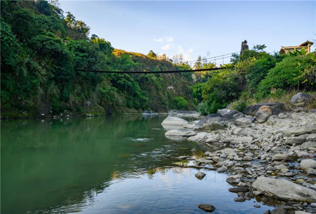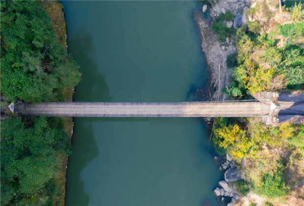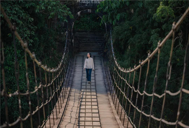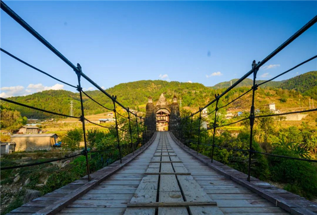 踏上龍江鐵索橋,步履前移,鐵索晃動,橋身輕擺,顫顫悠悠,腳下的橋板,仿佛背負(fù)著沉重的任務(wù),讓那原始的來自彼岸的腳步聲,帶來無限的遐想。洗耳恭聽,橋下江水潺潺,波濤翻滾,旋渦匍匐,濤聲湍急,讓人浮想聯(lián)翩;停下身來,站在橋上,手扶欄桿,憑欄遠(yuǎn)眺,西看絕壁險峻,東看田園奇峰,下觀碧浪翻騰。龍江上下,奇異風(fēng)景,盡收眼底;環(huán)顧四周,古道從高黎貢山爬出,將溫馨送至心扉。俯首沉思,橫臥的龍江鐵索橋似乎背負(fù)著希冀,正靜靜地等待。抬頭看向遠(yuǎn)方,希望在延伸,穿越時空,古道、索橋......