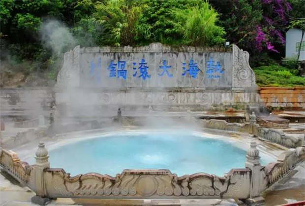 熱海,是騰沖跳動(dòng)的心臟 騰沖,是熱海寬闊的胸襟”。世界上有溫泉的地方很多,但像騰沖熱海這樣面積之廣、泉眼之多、療效之好,實(shí)屬罕見(jiàn)。熱海中最典型的是“大滾鍋”,它的直徑3米多,水深1.5米,水溫達(dá)97℃,晝夜翻滾沸騰,四季熱氣蒸騰。據(jù)說(shuō)從前有一頭牛到大滾鍋邊舔吃帶咸味的泉水,不小心掉入鍋內(nèi),待牧童從村里喊人來(lái)時(shí),已煮成一鍋牛肉。