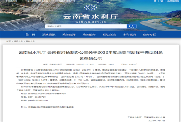 《2022年度綠美河湖標桿典型對象名單的公示》