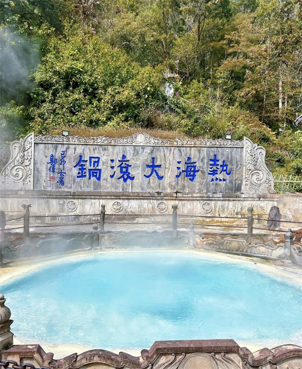 氣氤氳。踏進景區(qū),吸引人的是“熱海大滾鍋”,這是一個圓形溫泉池,水溫約96度,斷不可貿然入水,