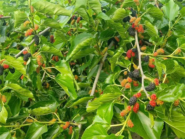 黑紫色的桑果掛滿枝頭