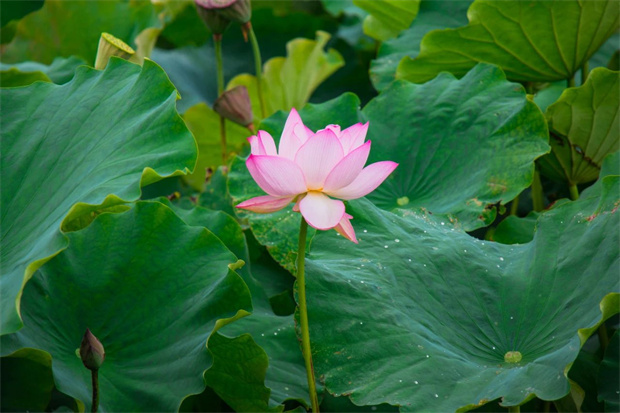 荷花次第舒展粉靨