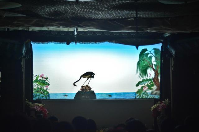 今天的第一出戲叫作《龜與鶴》,是騰沖皮影中少有的無對白的演出。即便這樣,憑借著演員們的精湛技藝和活靈活現(xiàn)的皮影,大至主角——龜與鶴,小至一掠而過的飛鳥與昆蟲,均如同活物一般。