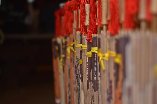 書桌的前方倒掛著一排油紙傘,雖說騰沖的油紙傘不如江南的有名,不過倒也算是泰國和越南油紙扇的祖輩。