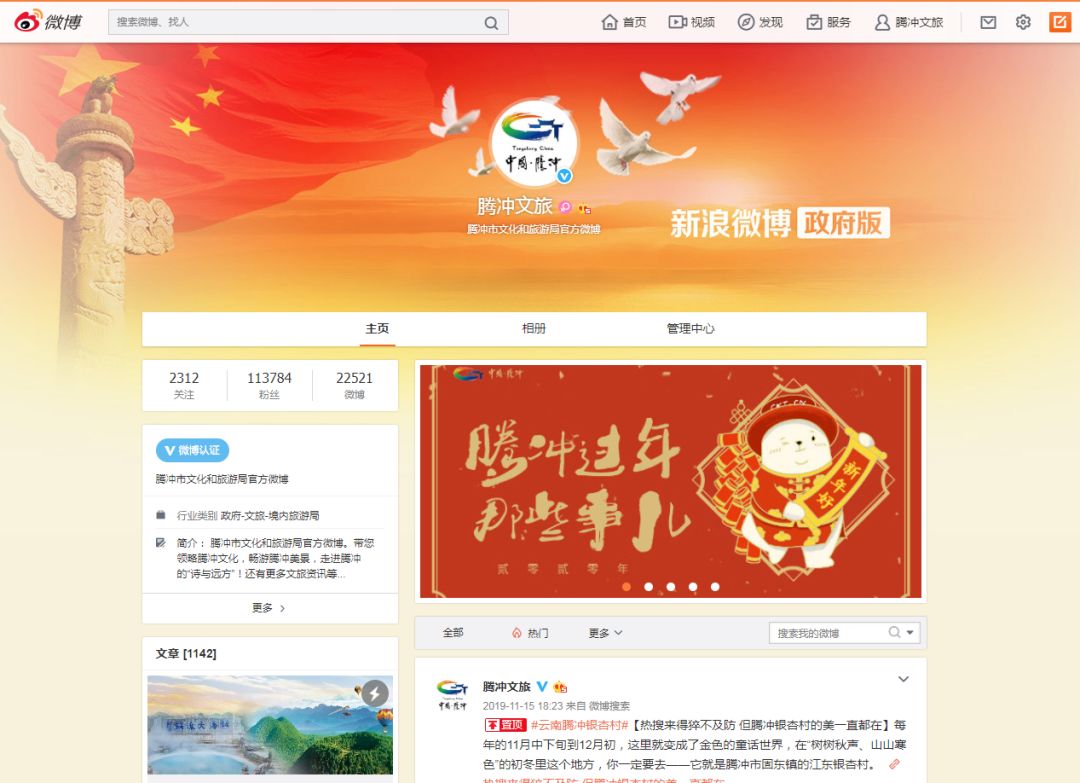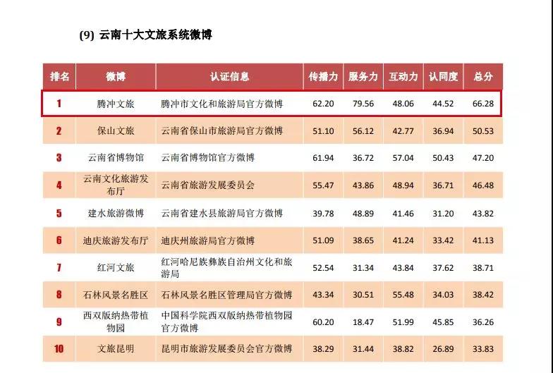2019年全國(guó)政務(wù)微博影響力:騰沖文旅榮登“云南十大文旅系統(tǒng)微博”榜首