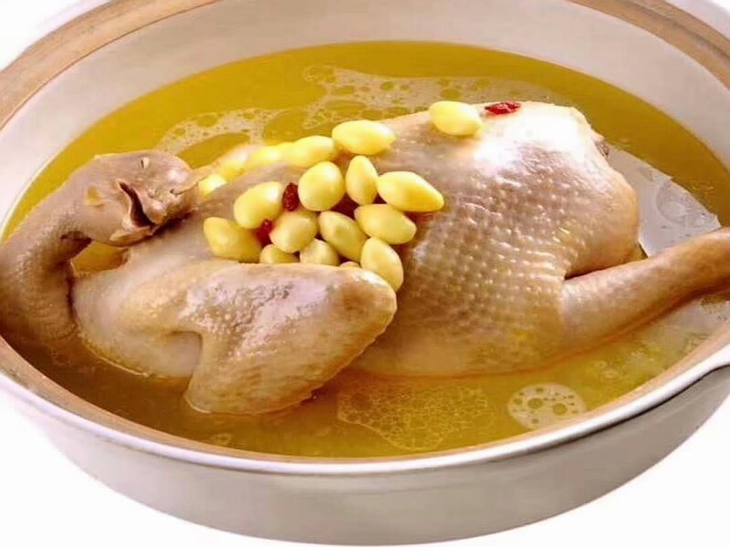 每年十一月銀杏樹由綠色慢慢轉(zhuǎn)換成黃色時,在騰沖必去打卡的一個點就是銀杏村,銀杏樹不僅給人們帶來了一場金色的視覺盛宴,同時也把它的果實饋贈給了人們,由此世間多了一道具有保健效果的美食------白果燉雞,白果燉雞是我國民間一道非常具有養(yǎng)生特色菜肴,具有健胃補脾,清熱解暑,降脂降壓,祛痰止咳、抑菌縮尿、防癌抗癌之作用。