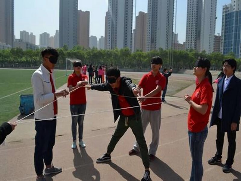 1、所有人蒙上雙眼,最好相互間把手牽在一起,圍圈行走,最后來到活動(dòng)場地。過程中任何人不能偷看。告知附近有一捆繩子,需學(xué)員共同合作,把繩子用盡,使之成為最大一個(gè)正方形。