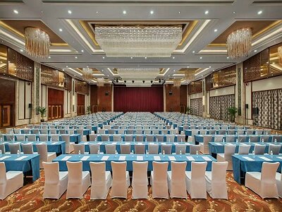 酒店擁有高7米,面積1200平方米的無柱式千人宴會廳及不同規(guī)格會議室19間,均配有高端專業(yè)影音設(shè)備和無線同聲傳譯系統(tǒng)。酒店為會議提供以下服務(wù):高清LED顯示屏;活動舞臺、白板、各式麥克風(fēng);多媒體投影儀、屏幕;演講臺、實(shí)物投影儀、攝像機(jī)、電視機(jī); 寬帶上網(wǎng)、激光筆、同聲傳譯; 筆記本電腦、電視電話會議;舞臺燈光、專業(yè)音響等,能滿足各種會議需求。