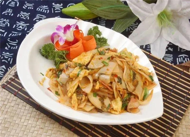 雖是落難皇帝,騰人亦以禮相待。當時永歷帝饑腸轆轆,急需進食,廚師來不及將餌卷切成絲,只三刀兩剁,加佐料炒熟供永歷帝進膳。這位落難皇帝本系深宮弱質(zhì),又經(jīng)長途奔波,今得進此食,比山珍海味還可口,便問:“此食何名?如此美味,真乃救吾駕也。”主人語塞之余,突然醒悟,奏曰:“此食原本無名,今日得皇上以救駕稱之,幸甚!”