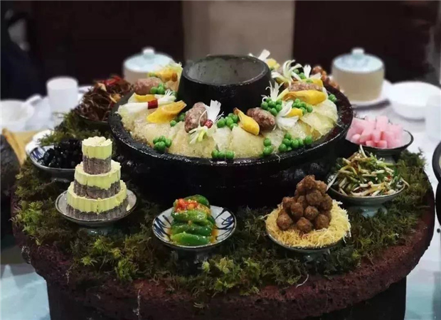 騰沖的土鍋?zhàn)有嗡乞v沖的火山和熱海。土鍋里面燒火碳,稱“火山”,周圍煮肉菜,為“熱?!薄?o:p>